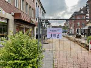 Trotz Baustelle sind alle Geschäfte in diesem Bereich während der Arbeiten weiterhin fußläufig gut erreichbar.