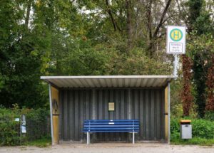 Hier teilen sich ältere Menschen und Schulkinder die Wartehäuschen, bis die Busse kommen. Nach einem Spaziergang oder auf dem Nachhauseweg ist für viele ein kleines Päuschen zum Verschnaufen wichtig – sei es, um auf den Bus zu warten oder kurz zur Ruhe zu kommen.