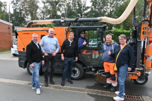 Am 30.09.2025 wurde der Sinkkastenreiniger termingerecht an den Bauhof geliefert. Die Firma RKF Bleses hat das Fahrzeug im Rahmen eines behindertengerechten Umbaus anpassen lassen. Der Antrag zur Teilhabe am Arbeitsleben bei der Deutschen Rentenversicherung machte den Umbau bezuschusst möglich.