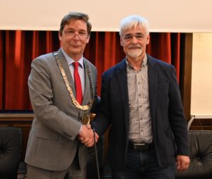 Die Sitzung wurde von Heinz Frey als dienstältestem Ratsmitglied eröffnet, der sodann die Einführung des Bürgermeisters in sein Amt übernahm. Der Stadtverordnete fand dankende Worte und nahm dem gewählten ersten Bürger der Stadt vor dem Überreichen der Bürgermeister-Kette das Versprechen ab, auch in den kommenden Jahren mit vollem Einsatz für die Stadt Jülich tätig zu sein.